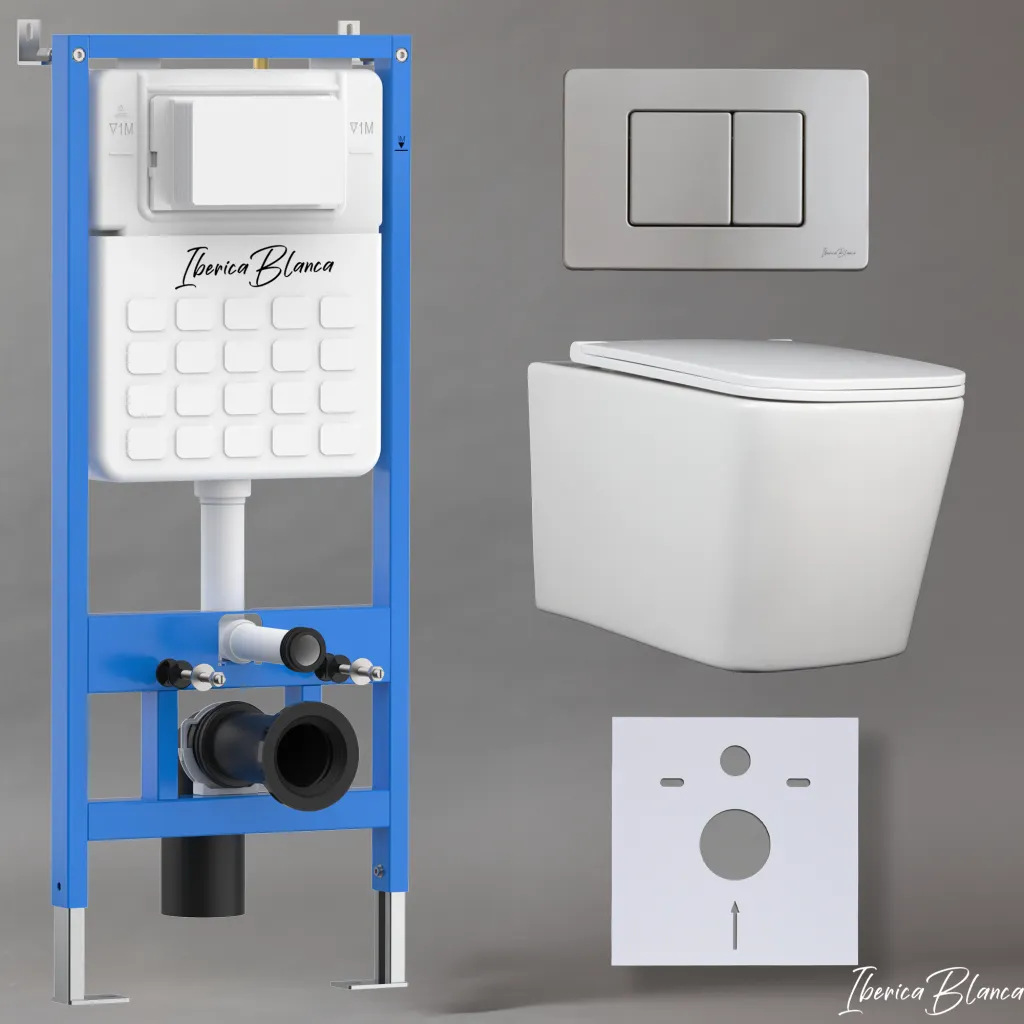 Комплект 3в1 IBERICA BLANCA инсталляция SILENCIO, унитаз TOLEDO ALTO белый, кнопка смыва INOX-C хром матовый арт-IB001.TLA.231.1132