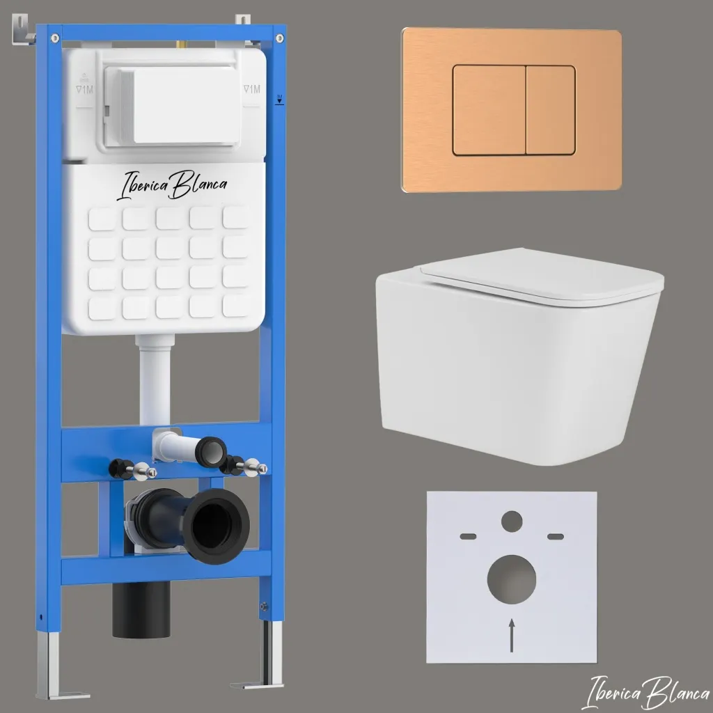 Комплект 3в1 IBERICA BLANCA инсталляция SILENCIO, унитаз TOLEDO ALTO белый, кнопка смыва INOX-C розовое золото матовое арт-IB001.TLA.231.1172