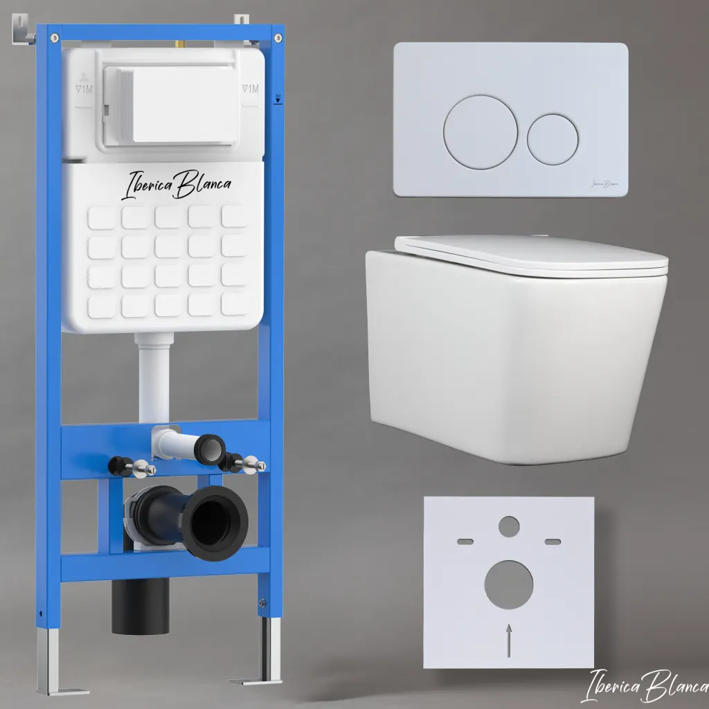 Комплект 3в1 IBERICA BLANCA инсталляция SILENCIO, унитаз TOLEDO ALTO белый, кнопка смыва INOX-O белый матовый арт-IB001.TLA.234.811