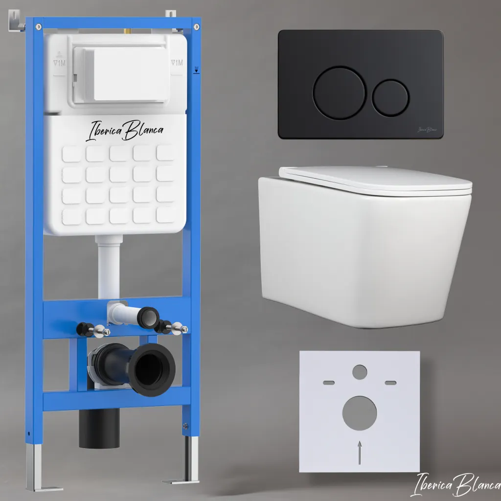 Комплект 3в1 IBERICA BLANCA инсталляция SILENCIO, унитаз TOLEDO ALTO белый, кнопка смыва INOX-O черный матовый арт-IB001.TLA.234.812