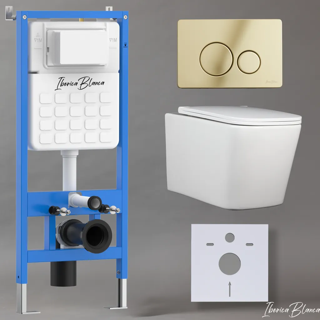 Комплект 3в1 IBERICA BLANCA инсталляция SILENCIO, унитаз TOLEDO ALTO белый, кнопка смыва INOX-O золото глянцевое арт-IB001.TLA.231.816