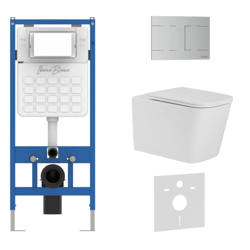 Комплект 3в1 IBERICA BLANCA инсталляция SILENCIO, унитаз TOLEDO ALTO белый, кнопка смыва INOX-R хром матовый арт-IB001.TLA.231.1501
