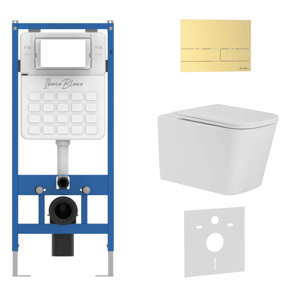 Комплект 3в1 IBERICA BLANCA инсталляция SILENCIO, унитаз TOLEDO ALTO белый, кнопка смыва INOX-S золото матовое арт-IB001.TLA.231.1603