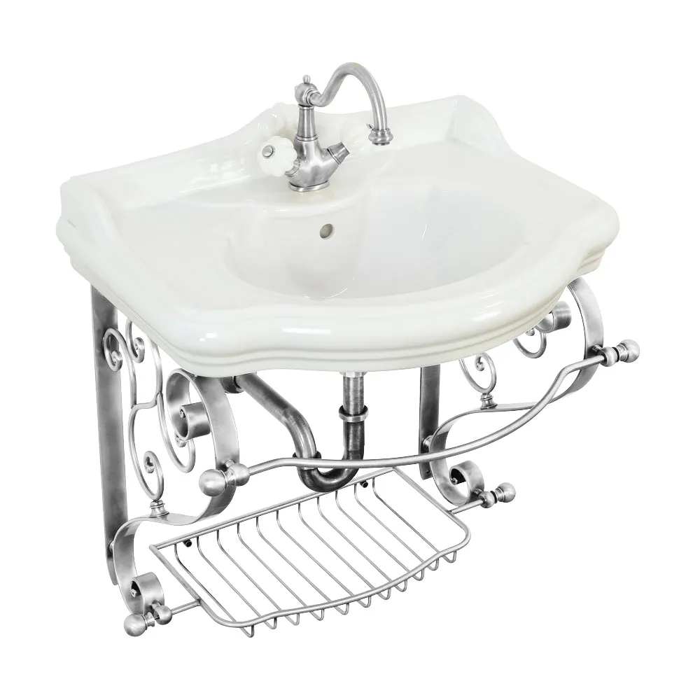 Комплект консоль BELLA подвесная 73 см. витая с решеткой хром, раковина IMPERO керамика белая арт-30342