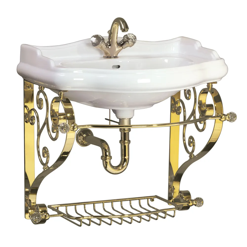 Комплект консоль BELLA подвесная 73 см. витая с решеткой золото, раковина IMPERO керамика белая арт-31268