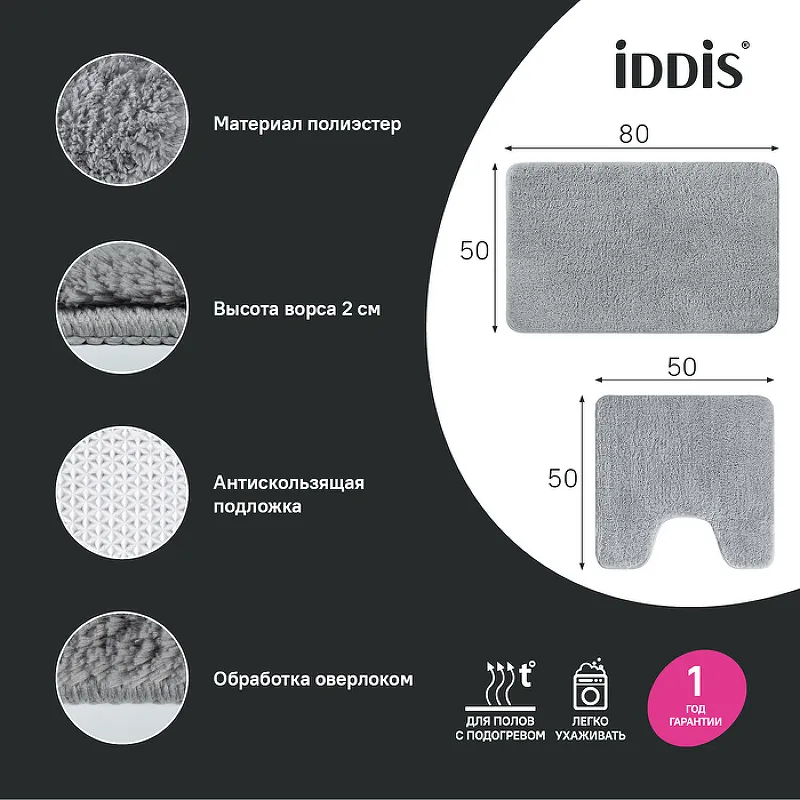Преимущества Комплект ковриков Iddis Base 50х80/50х50 BSET02Mi13 Серый