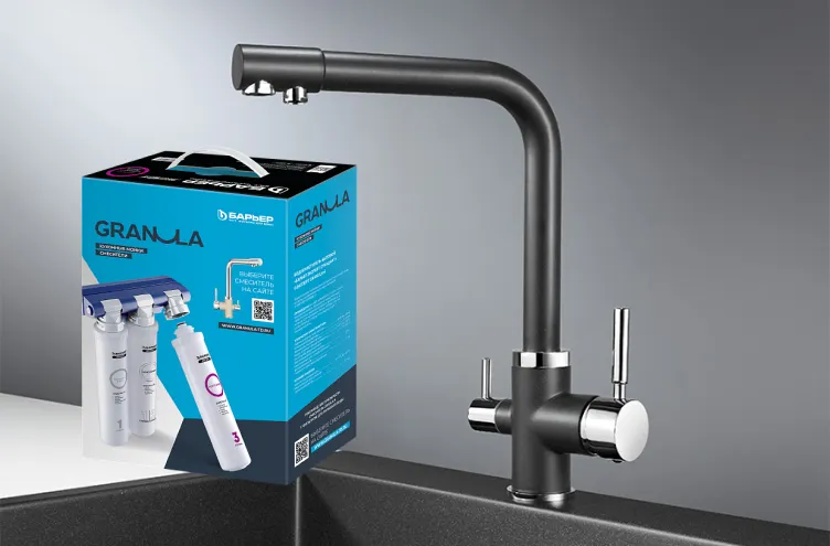- Чистая вода каждый день: Встроенный фильтр Granula обеспечивает чистую питьевую воду, удаляя вредные примеси.