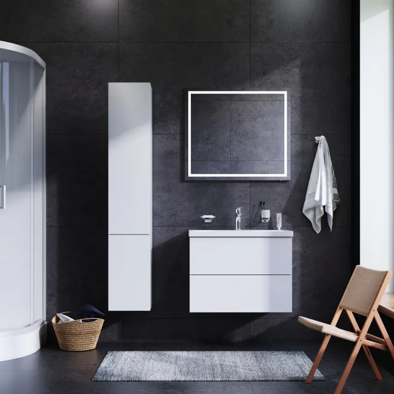 Комплект мебели для ванной AM.PM Gem 75 BK90GA – идеальное решение для современных ванных комнат. Данный комплект включает в себя подвесную тумбу, раковину из сантехнического фарфора и зеркало с подсветкой. Благодаря использованию высококачественного ДСП, мебель сохраняет насыщенный цвет на протяжении всего срока службы. Удобная система Push to Open и плавное закрывание Soft-Close делают использование мебели ещё более комфортным.