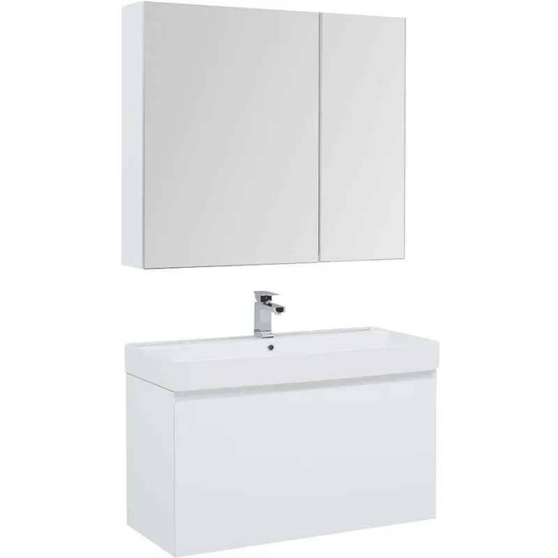 Комплект мебели для ванной Aquanet Йорк 100 203645 подвесной Белый глянец