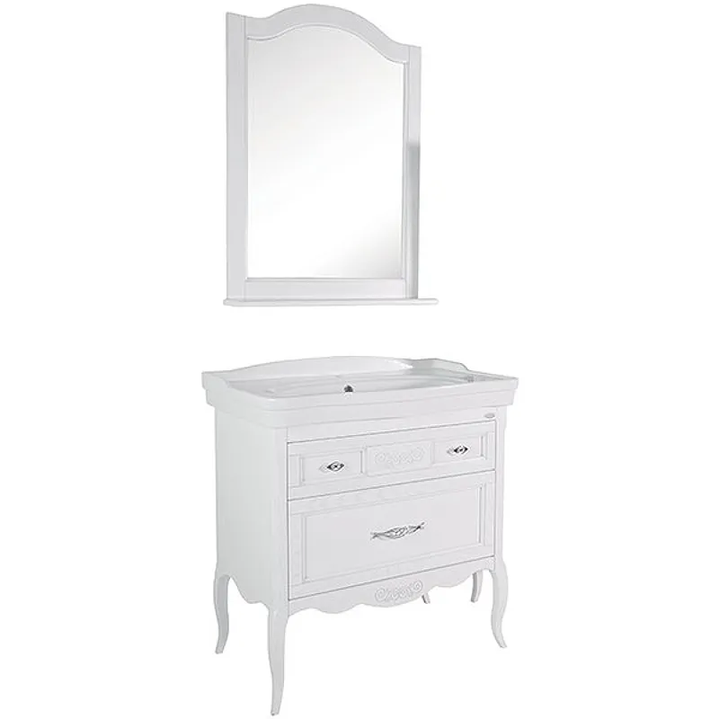 Комплект мебели для ванной ASB-Woodline Модерн 85 Белый с патиной Серебро