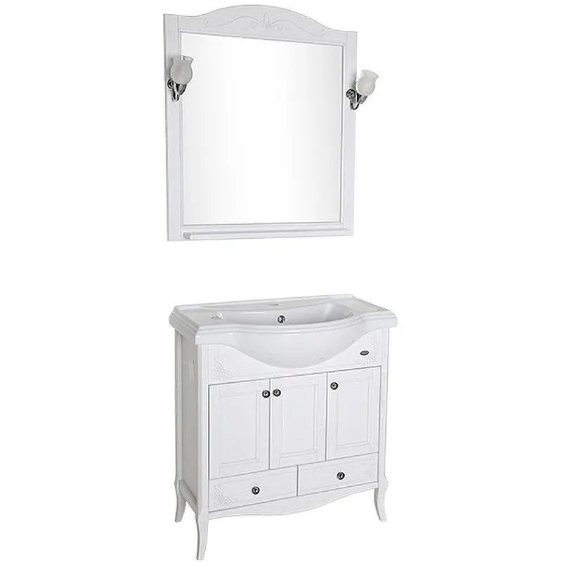 Комплект мебели для ванной ASB-Woodline Салерно 80 Белый с патиной Серебро