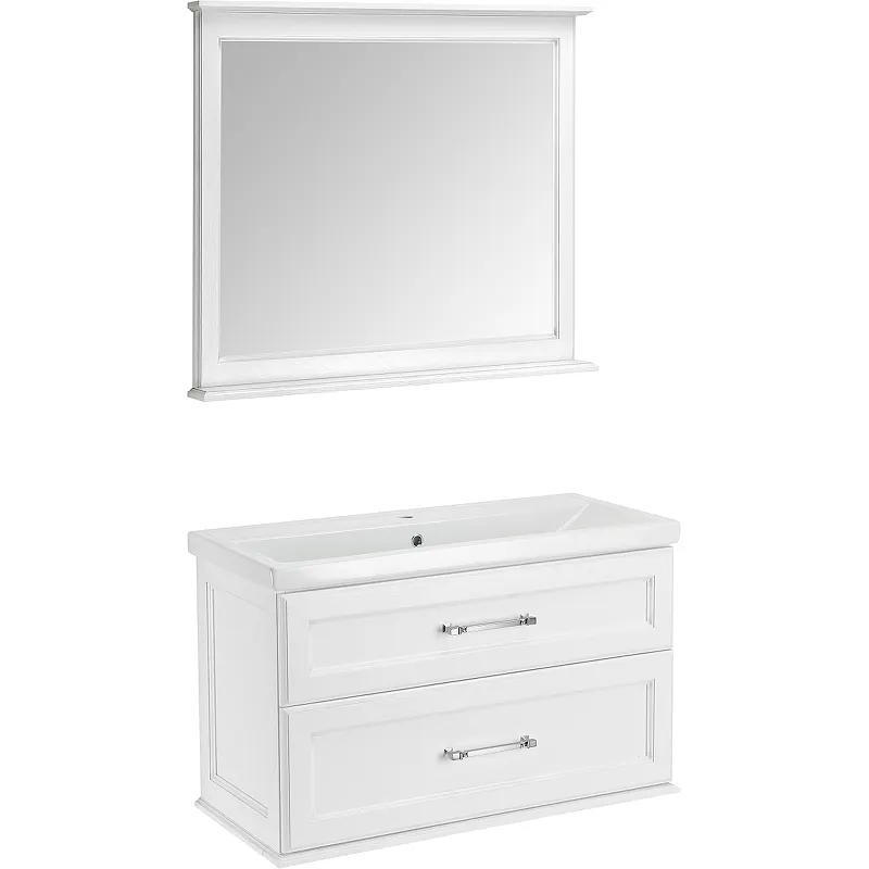 Комплект мебели для ванной ASB-Woodline Венеция 100 1195601 подвесной Белый с патиной Серебро