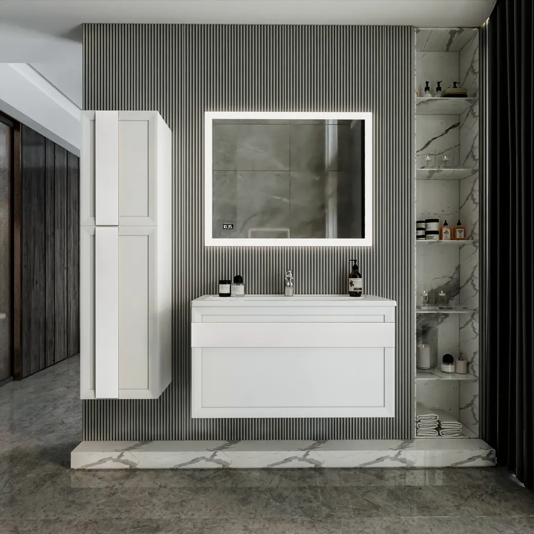 Комплект мебели Бриклаер БЕРЛИН состоит из: Тумба под раковину подвесная Бриклаер БЕРЛИН белый , 100 см, Ручка для тумбы Бриклаер БЕРЛИН 100 см, белый, Раковина Paola Mario 1000, белый, Шкаф навесной Бриклаер БЕРЛИН 60 см, белый, Шкаф навесной Бриклаер БЕРЛИН 90 см, белый, Ручка для шкафа Бриклаер БЕРЛИН 60 см, белый, Ручка для шкафа Бриклаер БЕРЛИН 90 см, белый, Зеркало Бриклаер Вега/Мальта 100 LED подсветка на взмах руки, часы.