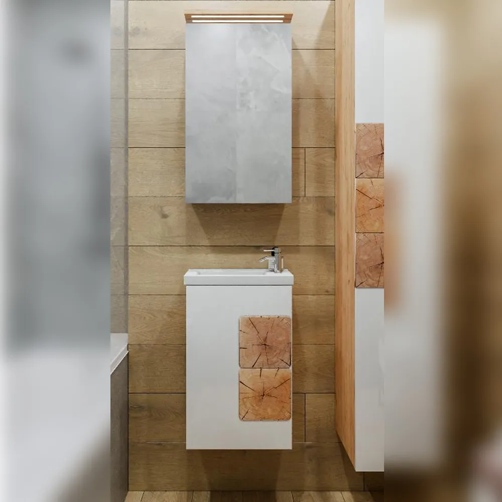 Комплект мебели Бриклаер Форест состоит из: Тумба под раковину подвесная Бриклаер Форест дуб золотой/белый, 40 см, Раковина Cersanit Como UM-COM40/1, 40 см, Зеркальный шкаф Бриклаер Форест 40 см, дуб золотой/антрацит.