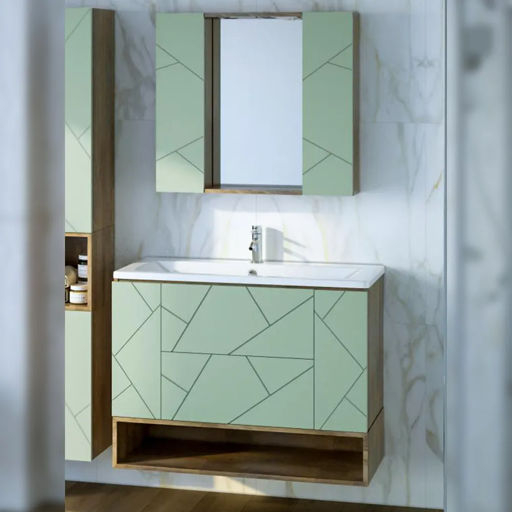 Комплект мебели для ванной Бриклаер , фисташковый/дуб гранж песочный арт-КРИСТАЛЛ 100ZF