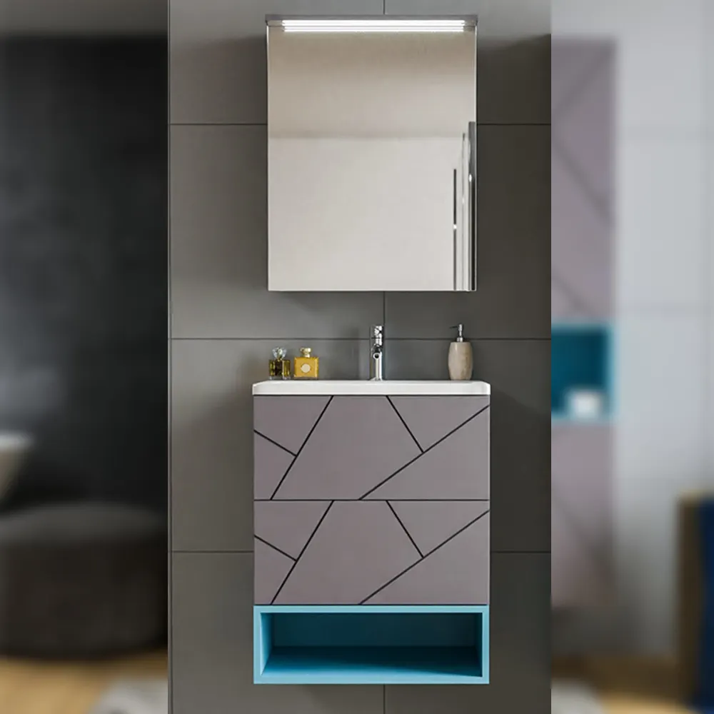 Комплект мебели Бриклаер КРИСТАЛЛ состоит из: Тумба под раковину подвесная Бриклаер КРИСТАЛЛ ясень анкор темный/графит, 60 см, Раковина Cersanit MODUO SLIM UM-MOD60SL/1, 60 см, Ниша для тумбы Бриклаер КРИСТАЛЛ 60 см, муссон, Зеркальный шкаф Бриклаер КРИСТАЛЛ 56 см, ясень анкор темный.