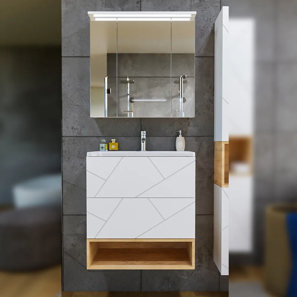 Комплект мебели для ванной Бриклаер , белый/дуб бунратти арт-КРИСТАЛЛ 70ZB