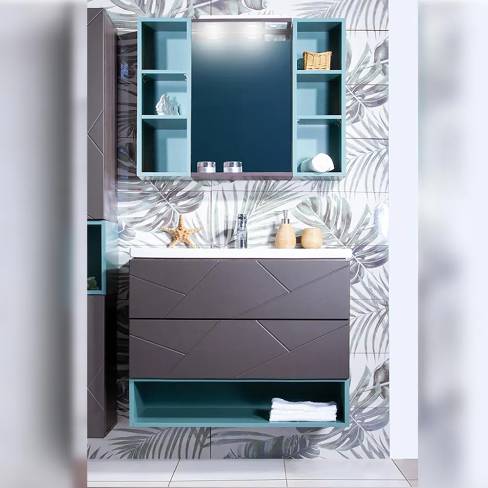 Комплект мебели Бриклаер КРИСТАЛЛ состоит из: Тумба под раковину подвесная Бриклаер КРИСТАЛЛ ясень анкор темный/графит, 80 см, Раковина Cersanit Como UM-COM80/1, 80 см, Ниша для тумбы Бриклаер КРИСТАЛЛ 80 см, муссон, Зеркало Бриклаер КРИСТАЛЛ 40 см, ясень анкор темный, Шкаф навесной открытый Бриклаер КРИСТАЛЛ 20 см, муссон 2 шт..