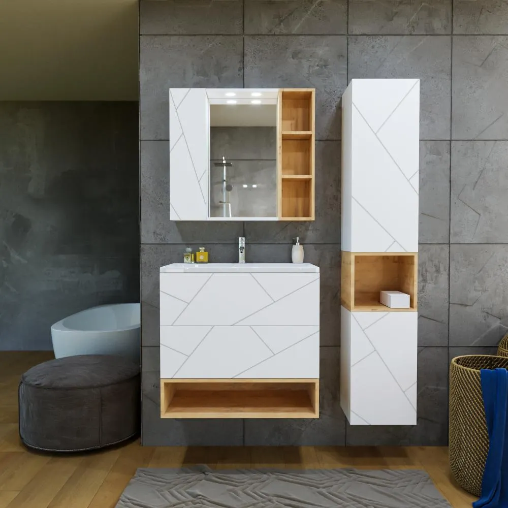 Комплект мебели для ванной Бриклаер , белый/дуб бунратти арт-КРИСТАЛЛ 80ZSNB