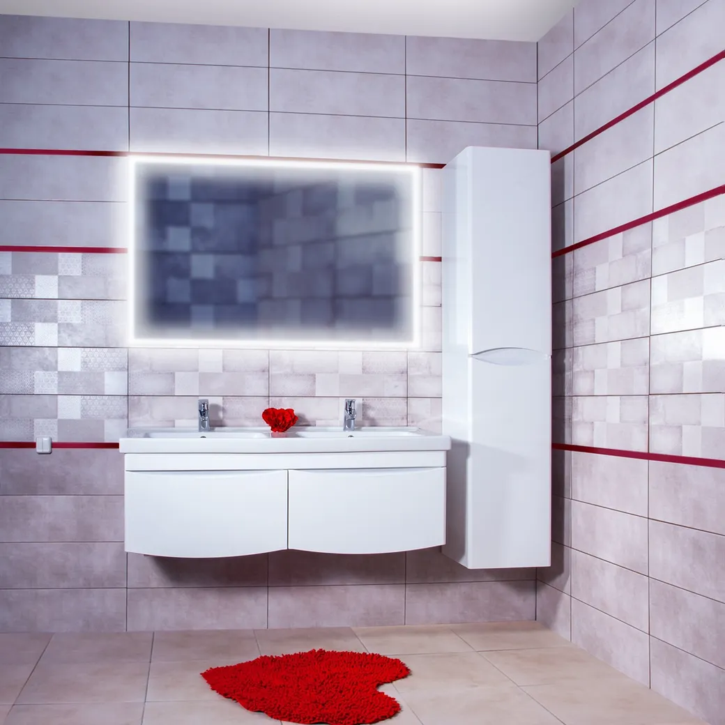 Комплект мебели Бриклаер ВЕГА состоит из: Тумба под раковину подвесная Бриклаер ВЕГА белый , 125 см, Раковина Дрея Гармония, 100 см, Пенал Бриклаер ВЕГА 35 см, белый, Зеркало Бриклаер Вега 125 LED подсветка на взмах руки, часы.
