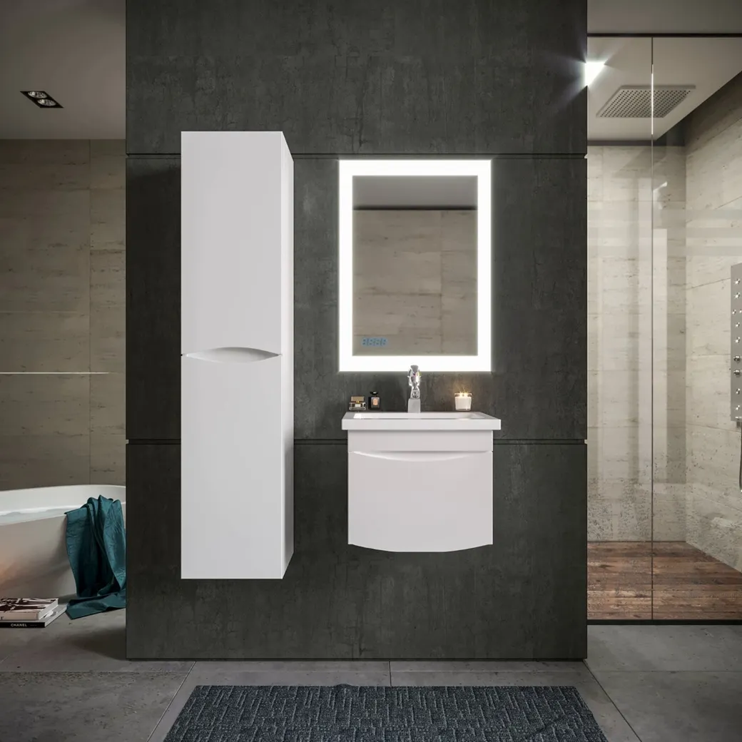 Комплект мебели Бриклаер ВЕГА состоит из: Тумба под раковину подвесная Бриклаер ВЕГА белый , 50 см, Раковина Cersanit Como UM-COM50/1, 50 см, Пенал Бриклаер ВЕГА 35 см, белый, Зеркало Бриклаер Вега 55 LED подсветка на взмах руки, часы.