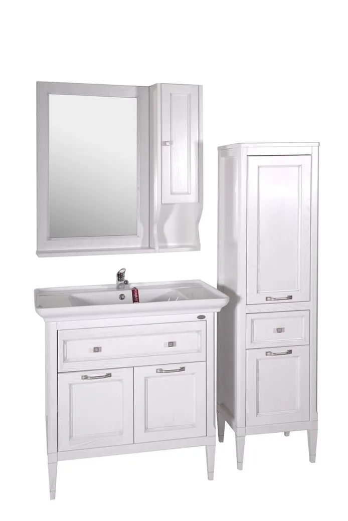 Комплект мебели для ванной Гранда 85 Белый Патина Серебро (Со шкафчиком) арт-1148703