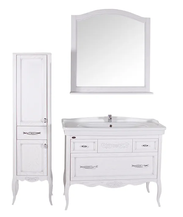 Совокупность легкости и изящества в изысканном и утонченном европейском классическом стиле комплекта Модерн 105 Белый Патина Серебро, изготавливаемого из массива натурального дерева, позволяет оригинально и лаконично решить эксклюзивный интерьер ванной комнаты. На белой поверхности мебели подчеркивается текстура дерева серебряной патины. Объемная элитная раковина в современном итальянском стиле блистает и переливается на нежных изгибах. Элегантное эффектное зеркало создаёт яркое впечатление. Комплект полностью оснащен системой плавного доведения движения от крупных европейских производителей. Модерн 105 – это уникальная и надёжная мебель для привилегированной ванной комнаты. В комплект входит: Подстолье Модерн 105; Зеркало Модерн 105; Керамическая раковина Модерн 105.