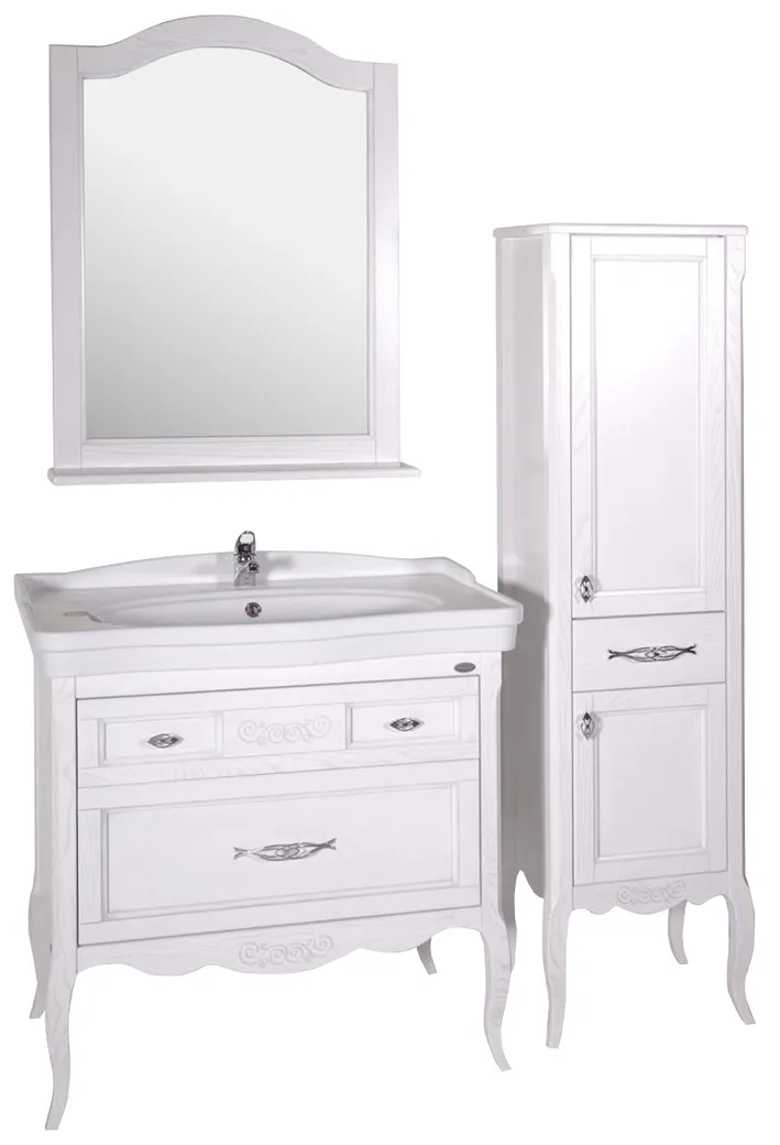 Комплект мебели для ванной Модерн 85 (Белый Патина серебро) арт-1124701