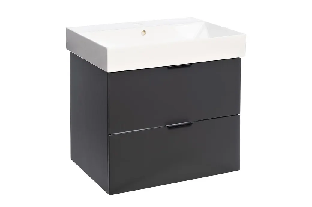 Серия Modern Line: Лаконичные подвесные тумбы в графитовом цвете Производитель: Европейский дизайн (указано: "Дизайн от ведущих производителей Европы") ----------------------Модельный ряд Артикул Модель Габариты тумбы (Ш?Г?В) Раковина в комплекте (Ш?Г?В) 14000011 Modern Line 60 575 ? 500 ? 450 мм 600 ? 100 ? 455 мм 14000017 Modern Line 80 820 ? 500 ? 436 мм 820 ? 100 ? 455 мм ----------------------Ключевые характеристики Параметр Описание Конструкция Подвесной монтаж (экономия пространства, удобство уборки) Система хранения 2 вместительных выдвижных ящика Материалы • Корпус/фасад: МДФ с декоративной плёнкой• Раковина: Сантехнический фарфор Отделка • Поверхность: Матовая• Цвет: Графит (единственный вариант) ----------------------Преимущества серии ? Стильный минимализм: - Монохромный графитовый цвет + матовая поверхность ? актуальный дизайн в стиле modern industrial.? Готовые решения: - Раковины идеально интегрированы по размеру (575 мм тумба + 600 мм раковина; 820 мм тумба + 820 мм раковина).? Практичность: - Влагостойкая плёнка МДФ устойчива к брызгам и перепадам влажности. - 2 ящика с плавным ходом для хранения косметики, полотенец.? Эргономика: - Глубина 500 мм оптимальна для небольших помещений. ----------------------Сравнение моделей Параметр Modern Line 60 Modern Line 80 Ширина 575 мм (компактная) 820 мм (просторная) Высота тумбы 450 мм 436 мм Раковина 600 мм (свес 12.5 мм по бокам) 820 мм (полное совпадение) Рекомендации Для малогабаритных ванных Для семейных помещений . ----------------------Серия Modern Line — выбор для ценителей сдержанной эстетики и функциональности. Идеальна, если требуется:• Единое стилевое решение без сложного подбора компонентов.• Надёжность влагостойких материалов.• Визуальное расширение пространства за счёт тёмного матового фасада.