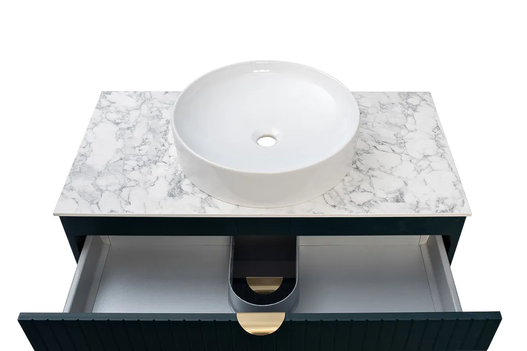 Тумба с раковиной Monte Lux Compact (Арт. 14000015) Краткое описание:Стильная и компактная тумба Monte Lux Compact для ванной комнаты, укомплектованная раковиной. Идеальное решение для небольших пространств. Изготовлена из качественных материалов с продуманной функциональностью и европейским дизайном. Основные характеристики: - Модель: Monte Lux Compact - Комплектация: Тумба + Раковина - Размеры тумбы (ШхВхГ): 910 x 846 x 460 мм - Размеры раковины (ДхВ): 430 x 105 мм (или ШхВ, уточните по фото) - Материал корпуса и фасада: МДФ, покрытый декоративной влагостойкой пленкой (толщина до 20 мм) - Фурнитура: Надежная, с удобной системой регулировки - Базовый модуль: 2 вместительных ящика - Тип установки: Напольная - Поверхность: Матовая - Доступные цвета: Зеленый, Золотой (уточняйте наличие) - Столешница: Высокопрочная HPL (High Pressure Laminate) толщиной 10 мм (интегрирована с раковиной?) - Дизайн: Разработан в сотрудничестве с ведущими европейскими производителями. Преимущества: - Полная комплектация: Готова к установке – тумба и раковина в одном наборе. - Компактность: Оптимальные габариты для экономии места. - Качество и надежность: Корпус и фасад из прочного МДФ с защитным покрытием. - Практичность: 2 удобных ящика для хранения, регулируемая фурнитура. - Современный дизайн: Матовая поверхность, актуальные цвета (Зеленый, Золотой), европейские тенденции. - Долговечная столешница: HPL-пластик устойчив к влаге, истиранию и воздействию бытовой химии. ---------------------- -