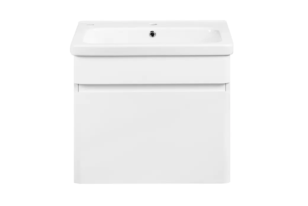 Тумба Prestige 60 Элегантное подвесное решение с усиленной конструкцией ----------------------Ключевые характеристики Параметр Описание Габариты тумбы (Ш?Г?В): 564 ? 500 ? 433 мм Раковина: Модель 70 (интегрирована) Габариты раковины (Ш?Г?В): 596 ? 40 ? 447 мм Тип установки: Подвесная Система хранения: 1 выдвижной ящик Материалы: Корпус и фасад из МДФ с влагостойкой эмалью Толщина МДФ: До 20 мм (премиальная прочность) Нагрузка ящика: До 40 кг (усиленная фурнитура) Поверхность: Полуматовая Цвет: Белый (классический универсальный) Раковина: Сантехнический фарфор (в комплекте) ----------------------Конструктивные преимущества ? Надёжность: - Утолщённый МДФ (20 мм) с влагостойкой эмалью для защиты от влаги и деформации. - Фурнитура с максимальной нагрузкой 40 кг на ящик.? Функциональность: - Полностью выдвижной ящик с плавным ходом и регулируемыми направляющими. - Подвесной монтаж освобождает пространство пола для легкой уборки.? Эстетика: - Полуматовая белая поверхность (не бликует, скрывает следы брызг). - Лаконичный дизайн от европейских производителей. ----------------------Комплектация и совместимость - В базовой поставке: - Тумба с 1 ящиком. - Раковина из сантехнического фарфора (модель 60). - Модульная система: - Совместима с пеналами Prestige (арт. PRS000P-L/R, 310?1600?332 мм). - Пример сборки: Пенал Левый + Prestige 80 + Пенал Правый (общая ширина: 1384 мм). ----------------------Рекомендации по применению • Для помещений: Просторные ванные комнаты (оптимальна для семейного использования).• Стилевое решение: Классика, скандинавский стиль, минимализм.• Особенности монтажа: - Требуется крепление к капитальной стене (из-за веса МДФ 20 мм и раковины). - Регулируемые подвесы позволяют нивелировать неровности стен.• Уход: Полуматовая поверхность легко очищается неабразивными средствами. Производитель: Европейский дизайн (указано: Дизайн от ведущих производителей Европы).Примечание: Габариты указаны в мм (Ширина ? Глубина ? Высота). Конструкция может быть изменена без уведомления. ----------------------Тумба Prestige 80 сочетает премиальную прочность (МДФ 20 мм, нагрузка 40 кг), практичную функциональность (подвесной монтаж, глубокий ящик) и эстетическую универсальность (полуматовая белая поверхность). Идеальный выбор для тех, кто ценит долговечность и чистые линии в интерьере ванной комнаты.