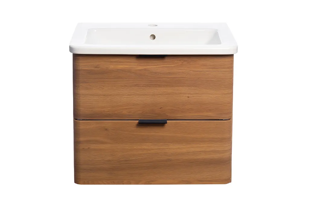 Серия Wooden: Подвесные тумбы с текстурой натурального ореха Производитель: Европейский дизайн (указано: "Дизайн от ведущих производителей Европы") ----------------------Модельный ряд Артикул Модель Габариты тумбы (Ш?Г?В) Раковина в комплекте (Ш?Г?В) 14000013 Wooden 60 580 ? 500 ? 450 мм 605 ? 30 ? 460 мм 14000018 Wooden 80 780 ? 500 ? 450 мм 800 ? 30 ? 460 мм ----------------------Ключевые характеристики Параметр Описание Конструкция Подвесной монтаж (визуальная лёгкость + удобство уборки) Система хранения 2 вместительных выдвижных ящика с плавным ходом Материалы • Корпус/фасад: МДФ с декоративной плёнкой (толщина до 20 мм)• Раковина: Сантехнический фарфор Дизайн • Поверхность: Текстурированная (имитация древесных волокон)• Цвет: Орех (теплый натуральный оттенок) ----------------------Преимущества серии ? Экологичная эстетика: - Текстура "под дерево" создаёт атмосферу природного тепла в интерьере.? Готовые решения: - Раковины идеально соответствуют ширине тумб (605 мм для 580 мм тумбы; 800 мм для 780 мм тумбы).? Надёжность: - Усиленный корпус из МДФ 20 мм + влагостойкая плёнка. - Регулируемая фурнитура европейского производства.? Эргономика: - Универсальная глубина 500 мм подходит для большинства помещений. ----------------------Сравнение моделей Параметр Wooden 60 Wooden 80 Ширина 580 мм (компактная) 780 мм (просторная) Раковина 605 мм (минимальный свес) 800 мм (гармоничное сочетание) Вместимость Оптимальна для 1-2 человек Идеальна для семейного использования Рекомендации Санузлы ? 5 м? Совмещённые ванные ? 6 м? ----------------------Дизайнерские особенности • Текстура: 3D-эффект натурального дерева (визуальный и тактильный комфорт).• Цвет "Орех": - Тёплый коричнево-бежевый оттенок ? сочетается с: - Керамогранитом под бетон/камень - Золотистой/матовой черной сантехникой - Плетёными корзинами, растениями ----------------------Серия Wooden — идеальный выбор для создания уютной ванной комнаты в эко-стиле или скандинавском дизайне. Преимущества:• Естественность — текстура "орех" визуально смягчает современные интерьеры.• Практичность — подвесная конструкция + 2 ящика для организованного хранения.• Гармония — точное соответствие размеров тумб и раковин.