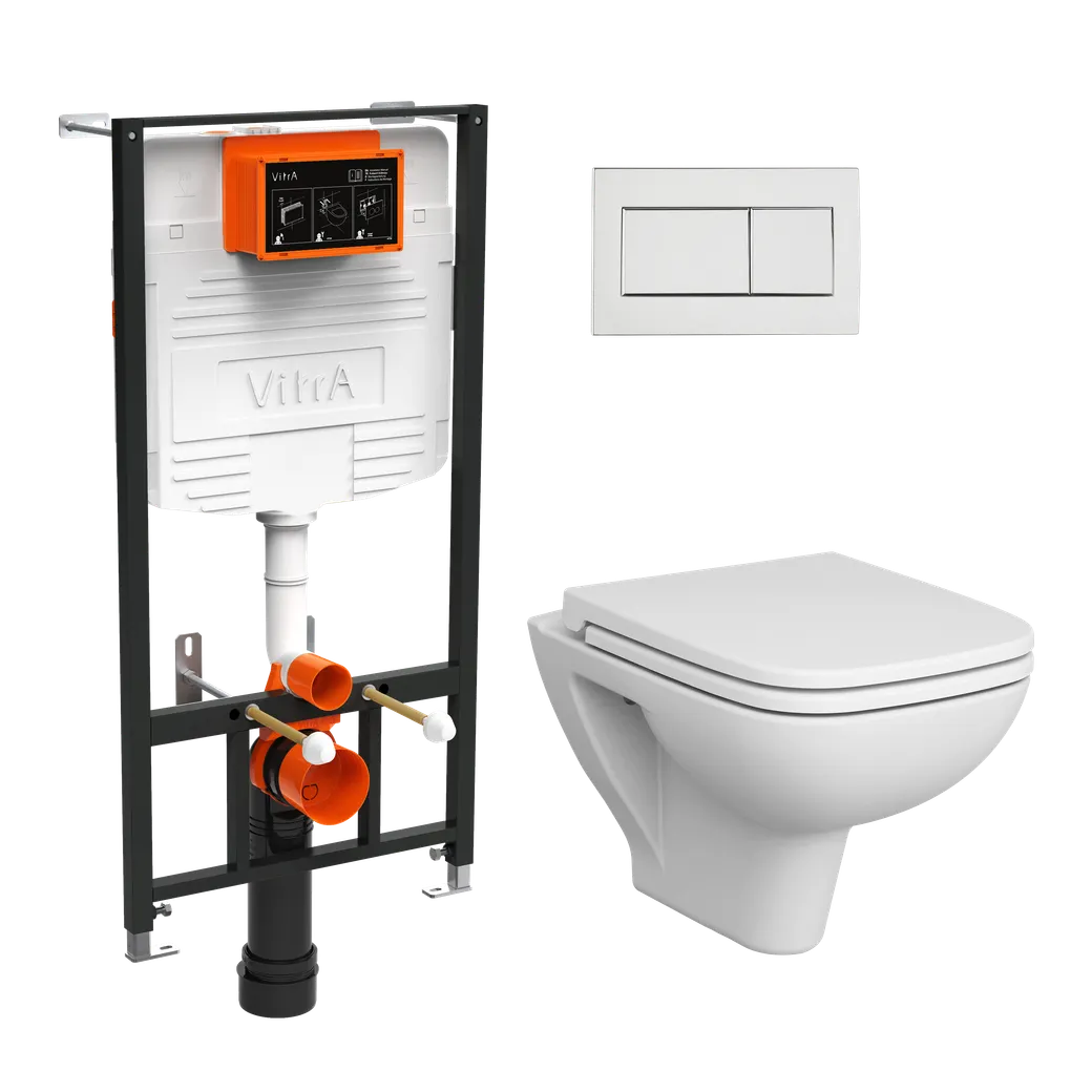 Купить комплект подвесного унитаза S20 с инсталляцией и кнопкой от Vitra — значит сделать выбор в пользу качества и надежности, обеспечивая комфорт и долговечность вашей ванной комнаты.