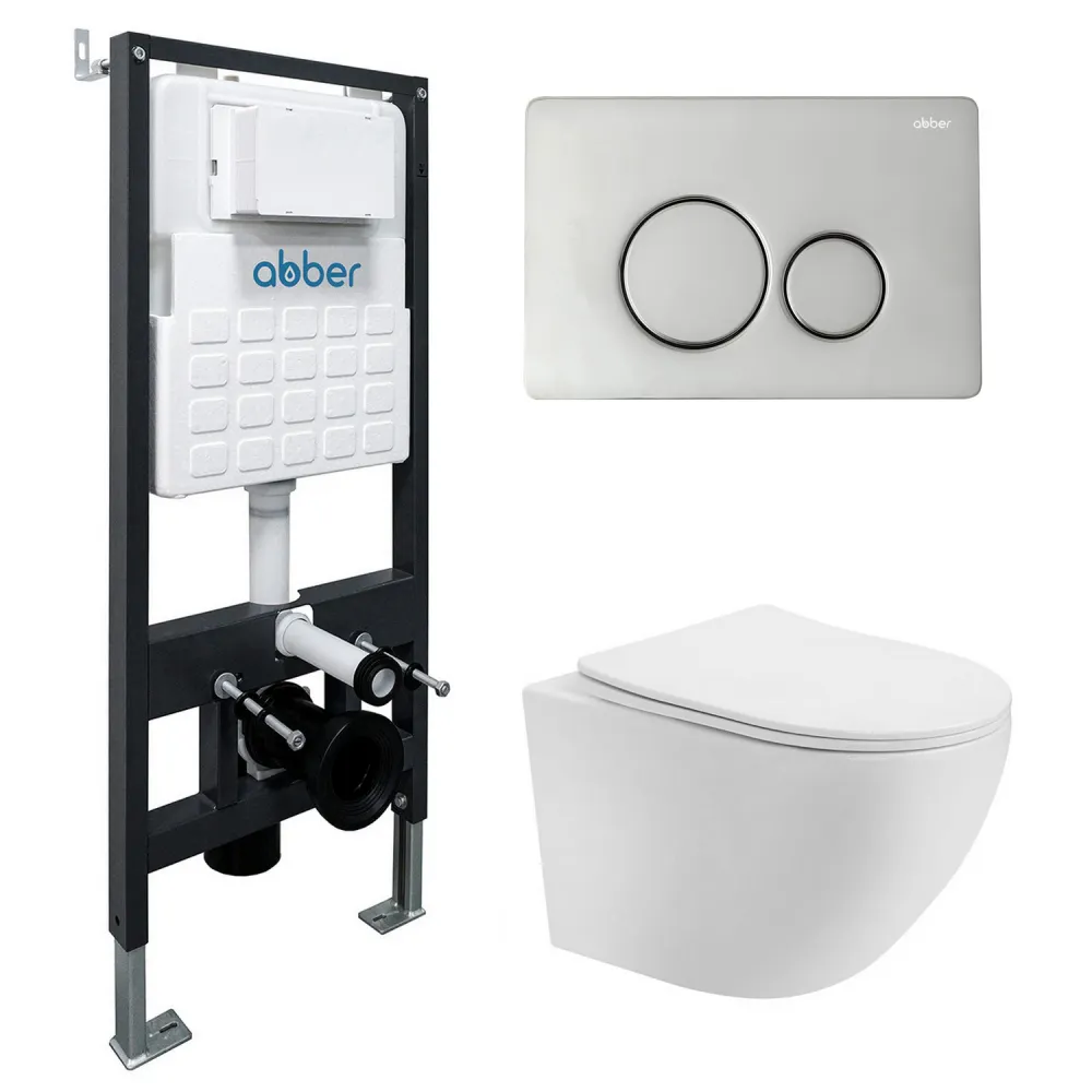 Комплект подвесной унитаз ABBER Bequem AC1100T белый с инсталляцией AC0105 и кнопкой AC0121 хром арт-AC1100T-AC0105-AC0121