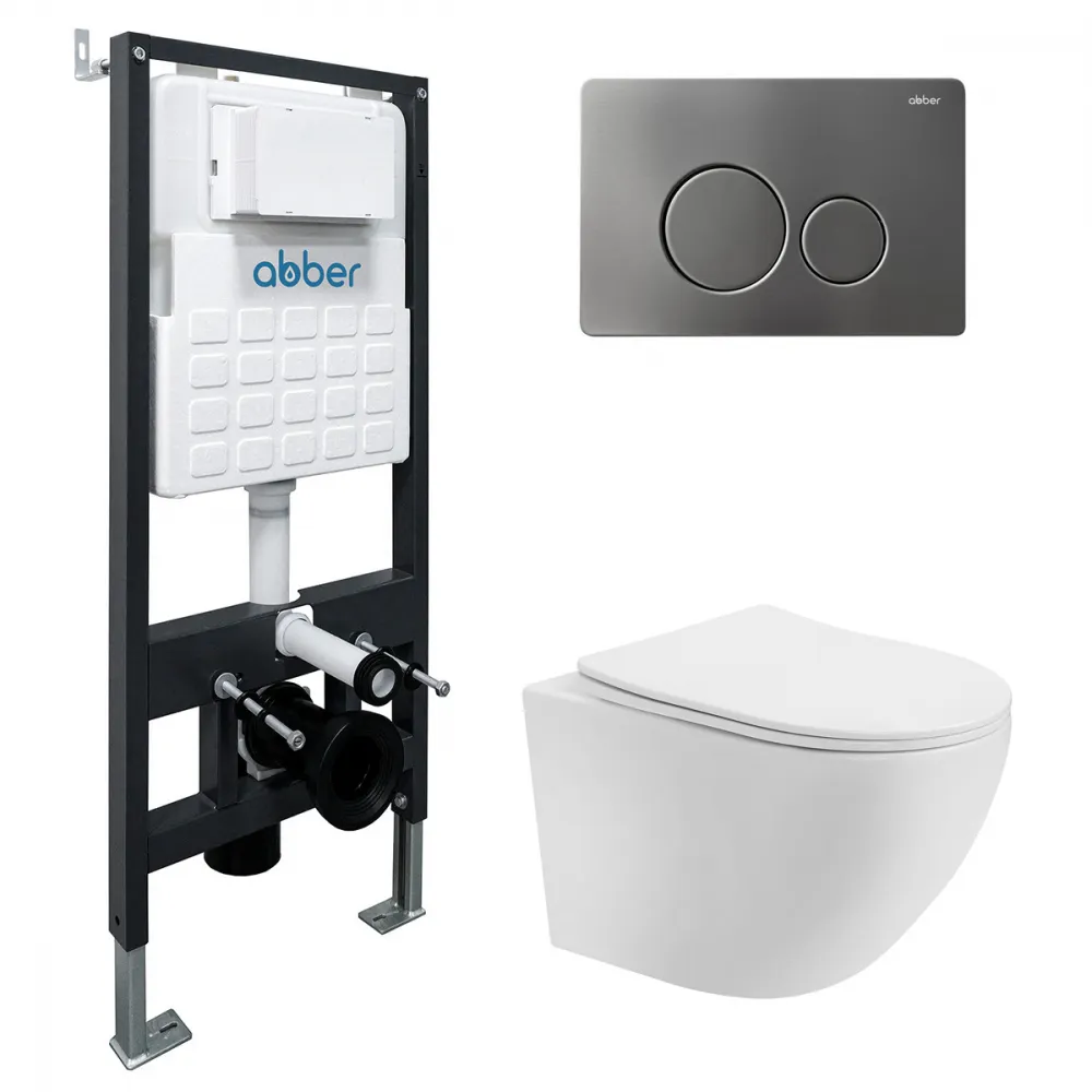Комплект подвесной унитаз ABBER Bequem AC1100T белый с инсталляцией AC0105 и кнопкой AC0121NG никель арт-AC1100T-AC0105-AC0121NG