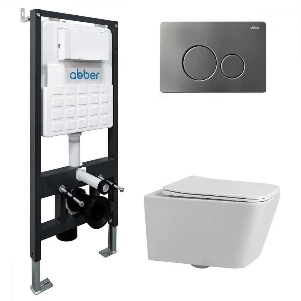 Комплект подвесной унитаз ABBER Rechteck AC1201 белый с инсталляцией AC0105 и кнопкой AC0121NG никель арт-AC1201-AC0105-AC0121NG