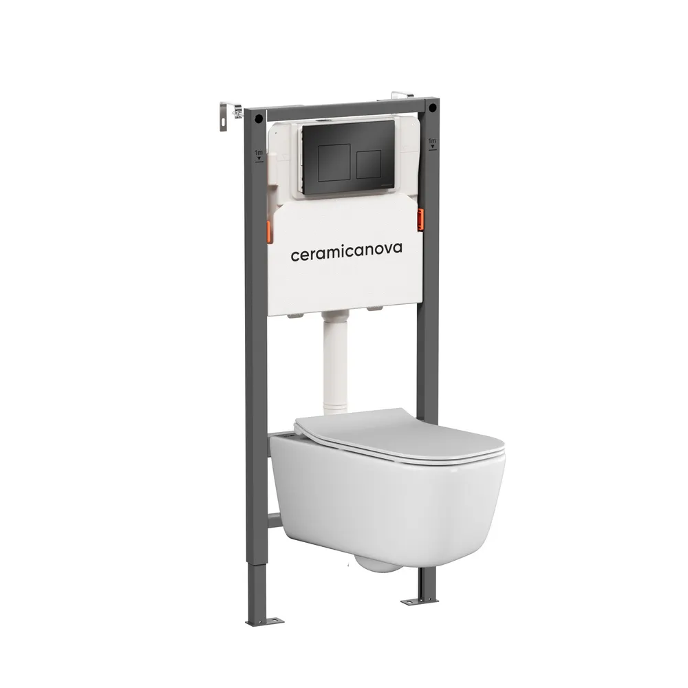 Комплект Подвесной унитаз NEW DAY Rimless + Система инсталляции Balance кнопка Square, черный матовый арт-CN3005_121002MB