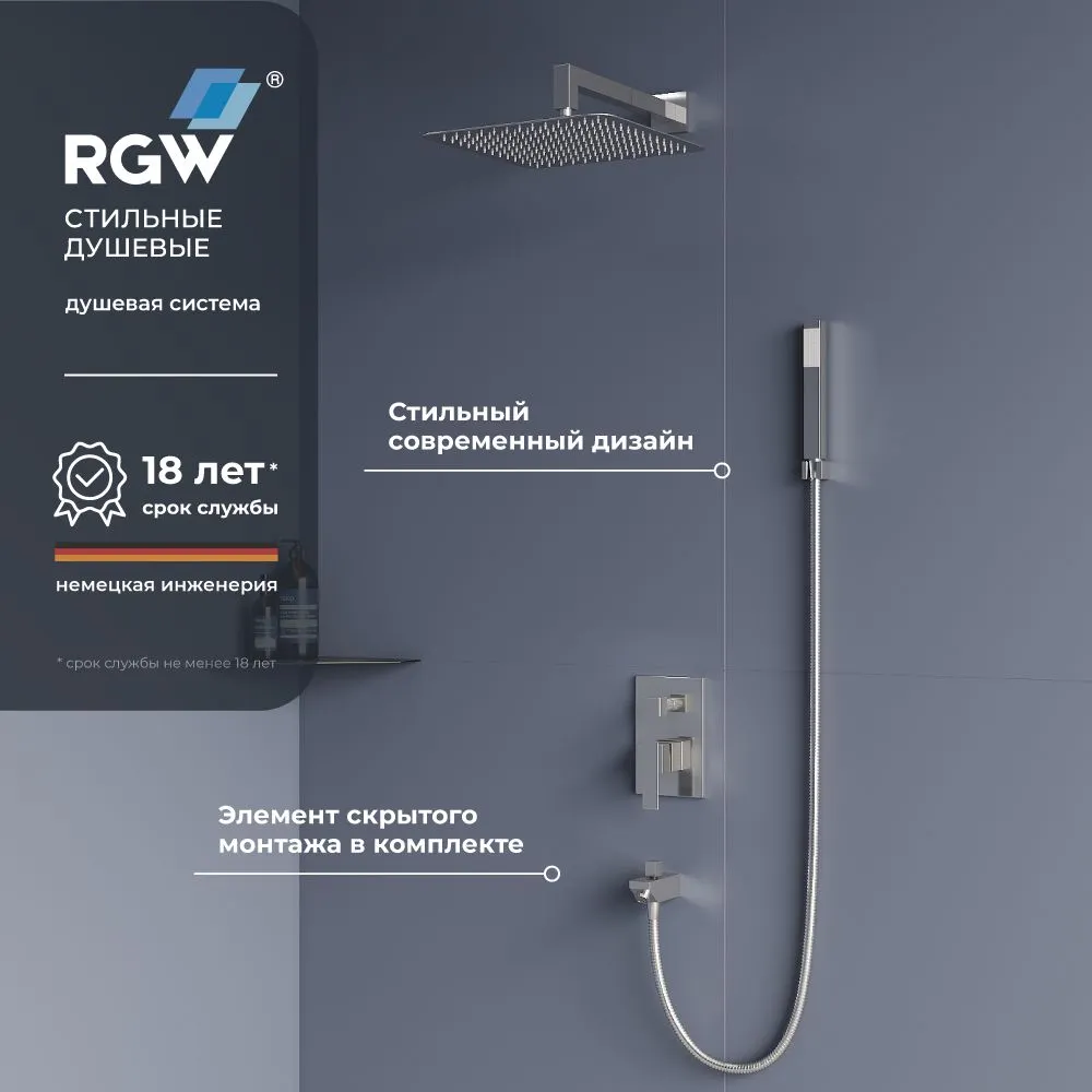 - Долговечность: Душевые системы RGW рассчитаны на эксплуатацию не менее 10 лет, благодаря передовым технологиям и качественным материалам.