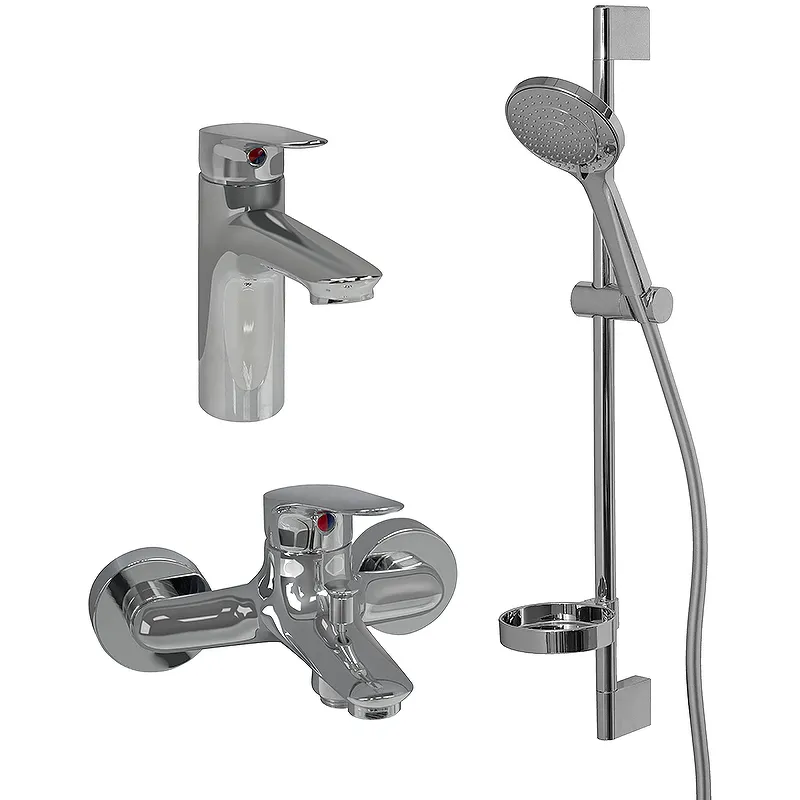 - Современный дизайн: Этот комплект смесителей подчеркнет современный стиль вашей ванной комнаты, благодаря глянцевому хромированному покрытию.