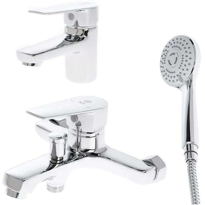 - Комплекты смесителей с душевым гарнитуром: Включает душевой гарнитур с 5-режимной лейкой, что обеспечивает разнообразие водных процедур и простоту ухода благодаря форсункам против известковых отложений.