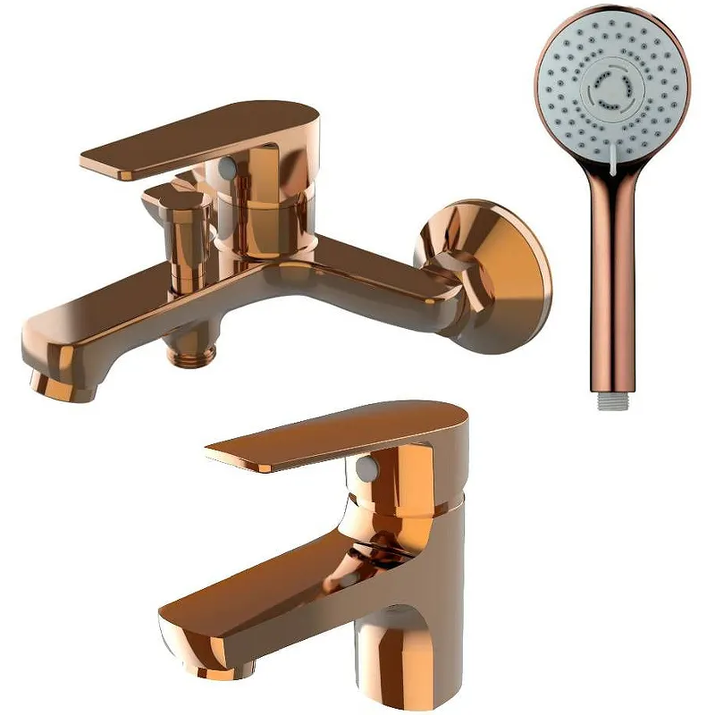 - Стильный дизайн: Комплект смесителей в цвете розовое золото с современным дизайном станет украшением вашей ванной комнаты.
