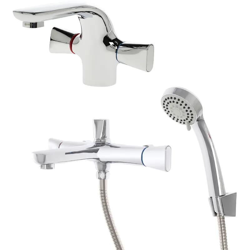 - Надежность и долговечность: Комплект смесителей из латуни обладает высокой износостойкостью, что гарантирует долгий срок службы.
