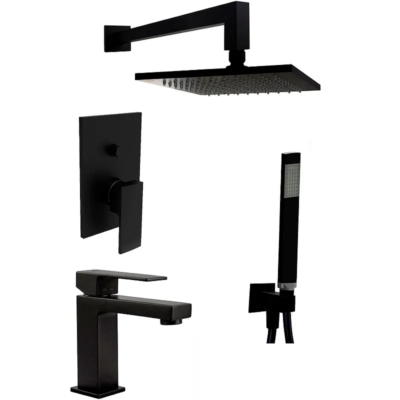 - Полная комплектация: включает смеситель для раковины, душевую систему и все необходимые аксессуары для установки.