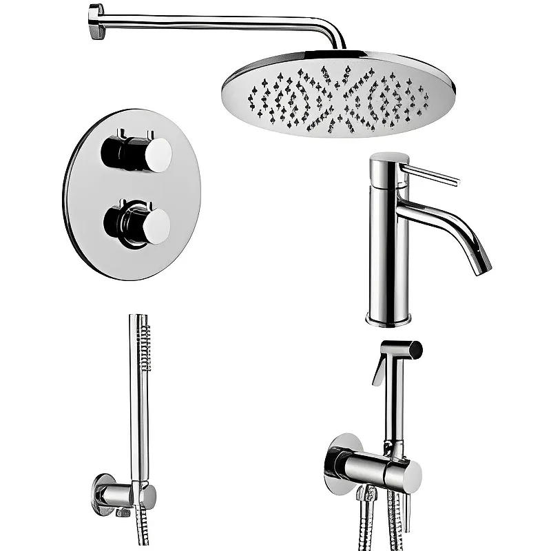 Комплект смесителей Paffoni Light KITZLIQ018CR071 – это идеальный выбор для тех, кто ценит современный дизайн и итальянское качество. Данный комплект смесителей включает в себя смеситель для раковины, смеситель для душа, гигиенический душ и душевой гарнитур, выполненные из хромированной латуни. Все элементы обладают глянцевой поверхностью, что придаёт ванной комнате элегантный вид.