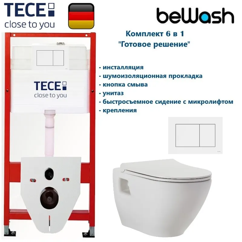 КОМПЛЕКТ TECE + beWash: 9400413 Инсталляция TECE + Vettern Унитаз подвесной с сиденьем микролифт белый глянец 82323201+EVB7382 арт-TC41382201