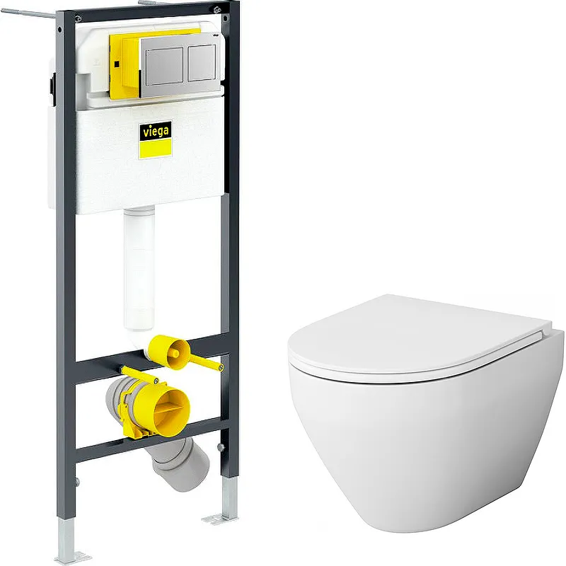 - Инсталляция Viega Prevista Dry: Устойчивая стальная рама с бачком скрытого монтажа гарантирует надежность и долговечность.