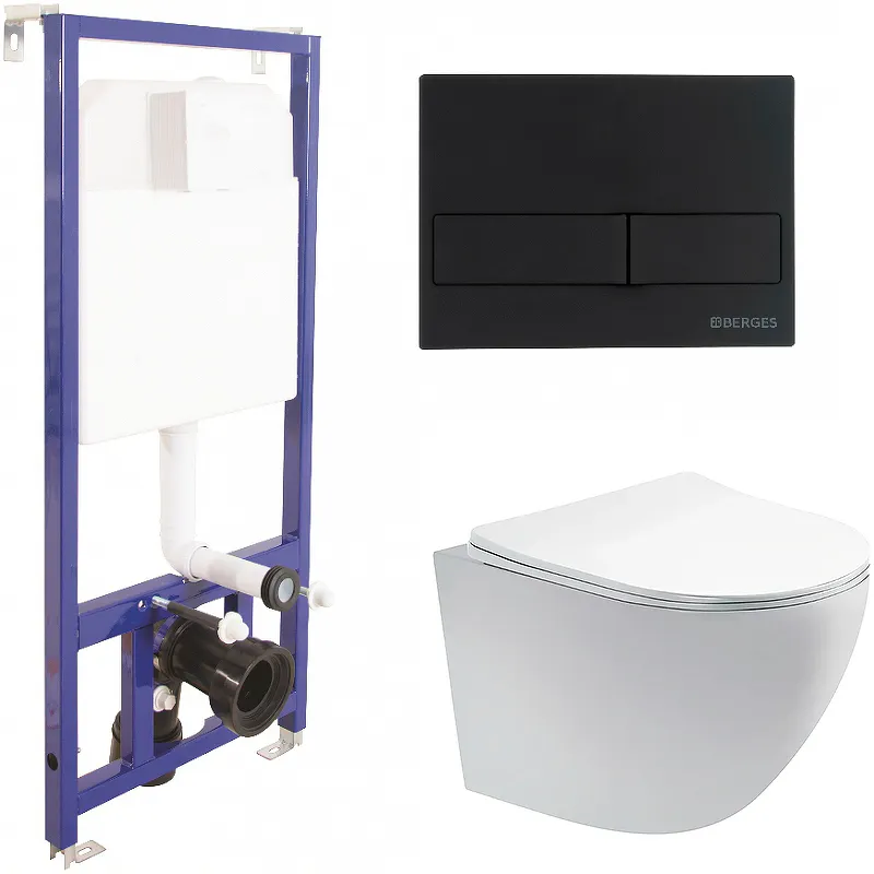 - Инсталляция со смывным бачком и черной матовой клавишей смыва Berges Novum L5 040215