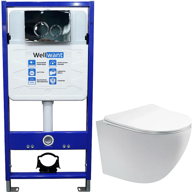 - Надежная инсталляция: Инсталляция WellWant Standart 50 выдерживает нагрузку до 400 кг, что гарантирует безопасность и долговечность.