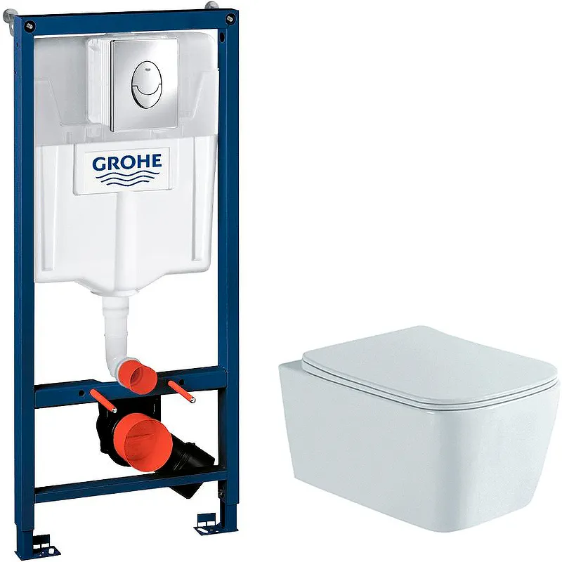 - Инновационная инсталляция: система Grohe Rapid SL с хромированной клавишей обеспечивает надежный монтаж и легкость в управлении смывом.