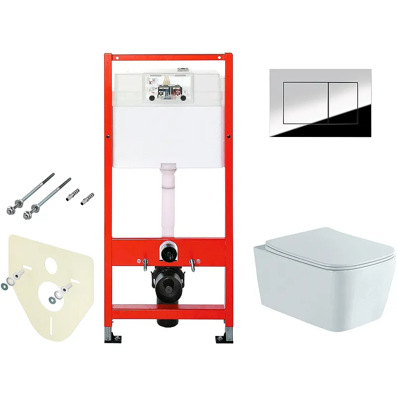 - Изящный дизайн: Хром глянцевая клавиша смыва и белый фарфоровый унитаз создают современный и элегантный вид.